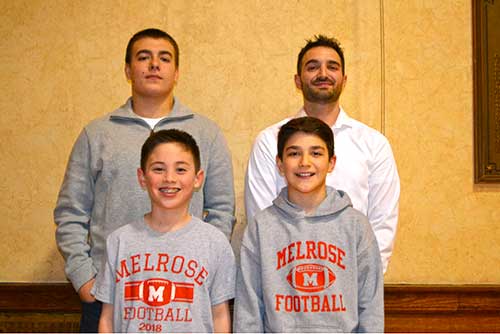 The evening’s guest speaker included Melrose High’s recently named 2019 football captain Billy Pesce. Billy spoke about his positive MYFC experience and encouraged the crowd of over 250 participants, coaches and parents to “continue to work hard and reaching towards their goal of playing under the Friday night lights.”