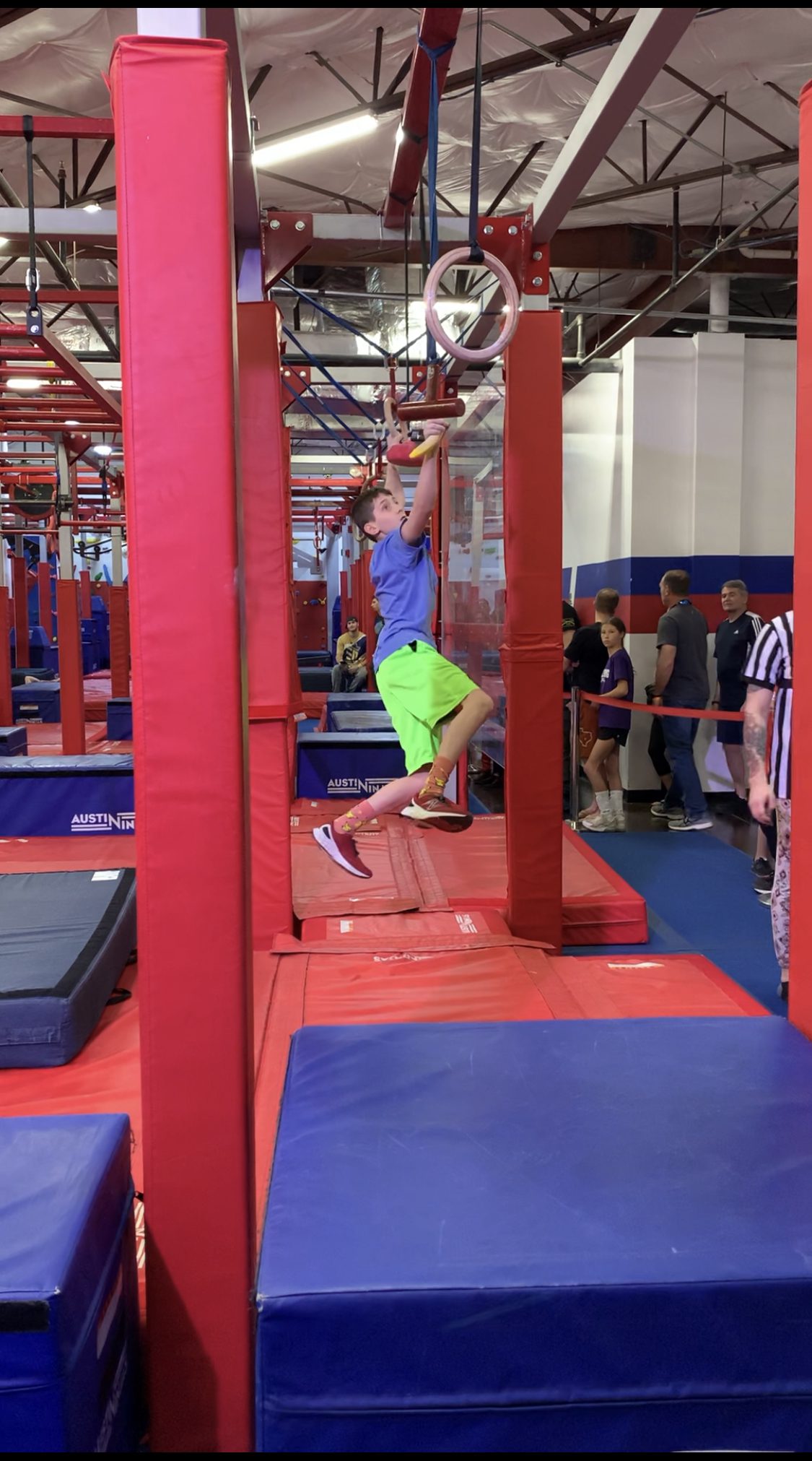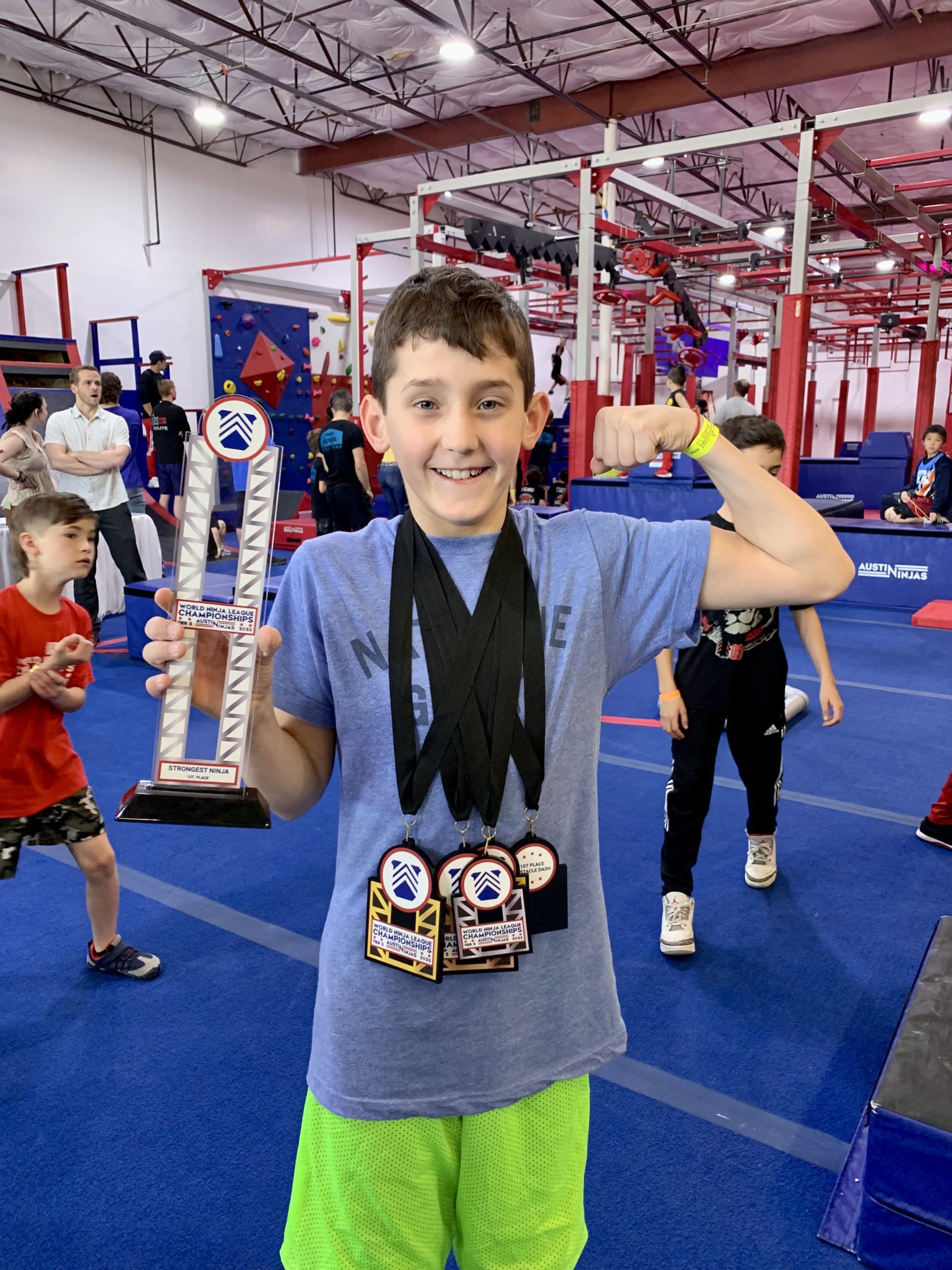 “It feels nice,” said Nathan. “I didn’t know anyone at that competition, and didn’t have a coach. I introduced myself to a coach I had seen a few weeks earlier at a different competition, and asked him to coach me through the course, and he did. I had a really good run and won a huge gold medal. The ninja community is all about helping others, and I love that. I want to be a ninja coach when I get a little older too.”