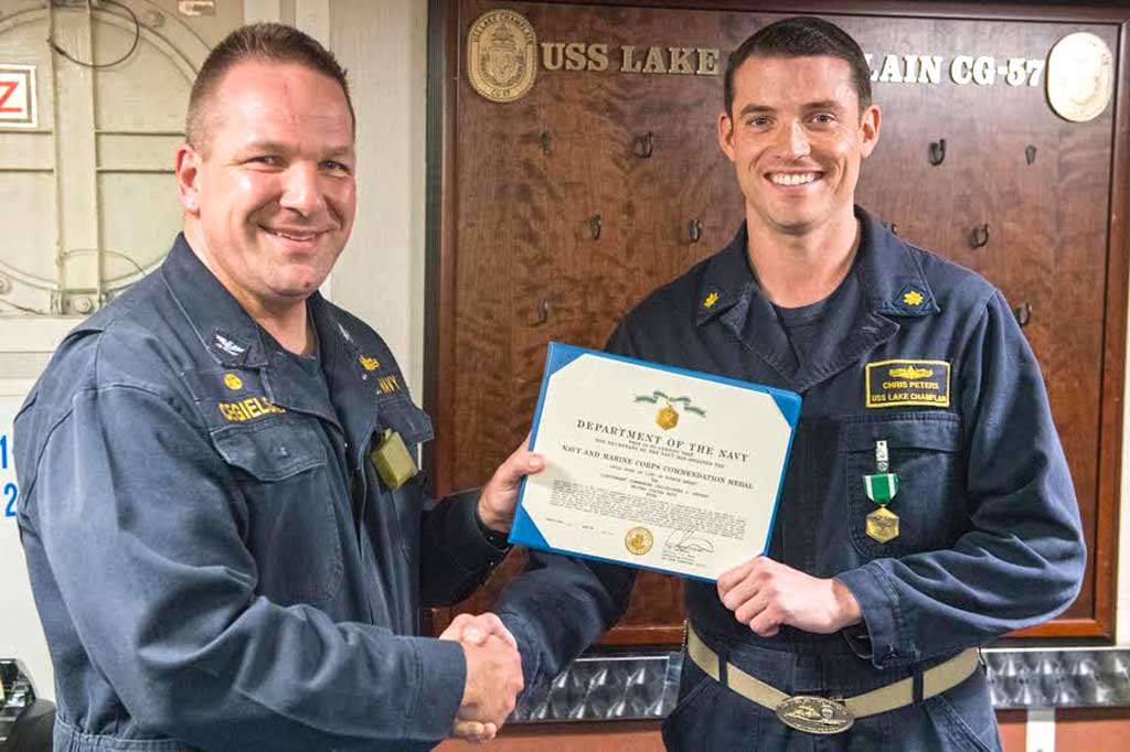 Today, Peters is a surface warfare officer who most recently served as a department head, leading three divisions of about 90 total sailors, on board the USS Lake Champlain. The cruiser is part of the USS Carl Vinson carrier strike group that spent a portion of this year doing exercises near the Korean Peninsula in response to ongoing tensions there. While on board the Lake Champlain, Peters reportedly spent a month in the South China Sea, before going on to participate in an annual training exercise with the South Korean and Japanese Navies. That recent journey also reportedly included a stop in Singapore. However, for Peters, the most memorable part of that exercise may have been the week he spent on board the Korean destroyer Wang Gon. The language barriers were reportedly considerable, but aided by ever-present translators, and Peters cited the “incredible kindness” that his hosts displayed the American guests while on board, sending them back to their own ships with gifts of Korean snacks.
