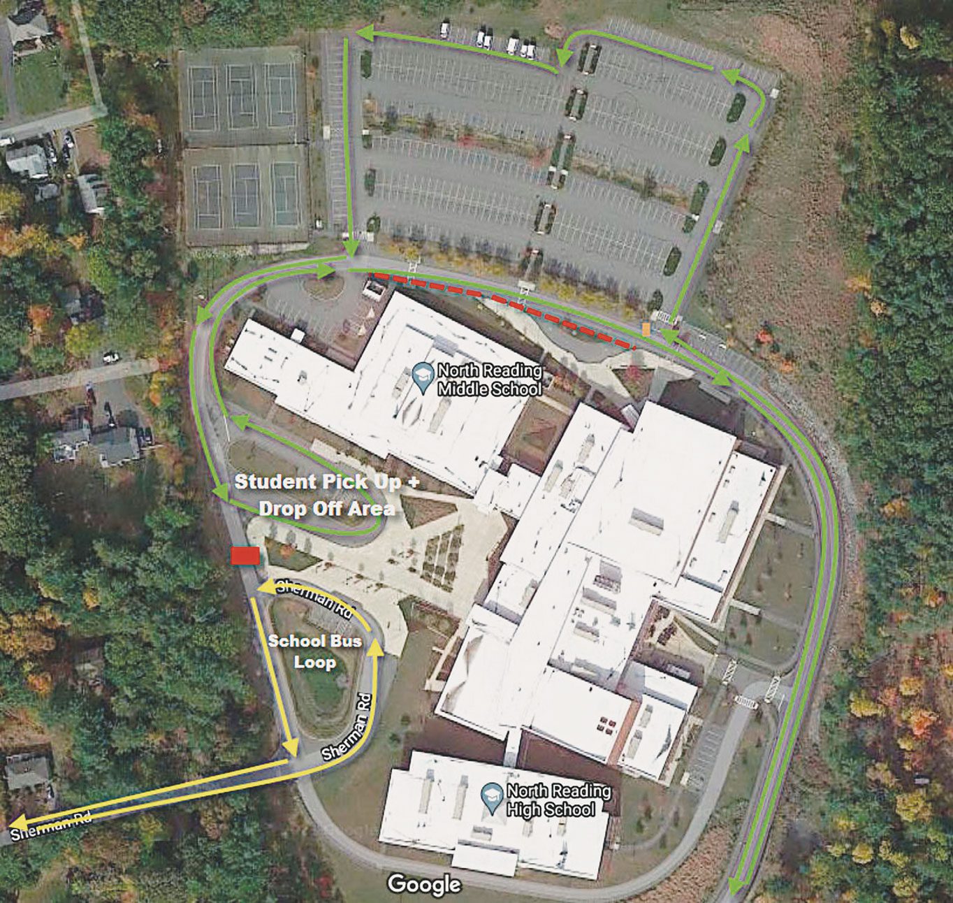 Lucci, King, NRHS Principal Anthony Loprete and NRMS Principal Dr. Catherine O’Connell also teamed up to create an eight-and-one-half minute video explaining all the changes, complete with aerial photos of the lots superimposed with color-code directional arrows. This link (north-reading.k12.ma.us/families/pages/dropoffpickup) will take you directly to the video on the school’s website. Still photos of both lots are printed in today’s Back-to-School edition.
