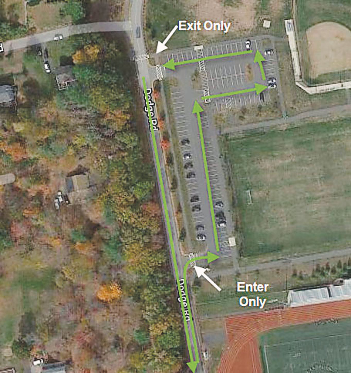 With the adoption of new later school start times at both the Middle School and High School and the sharing of bus transportation for students in grades 6-12 for the first time in decades in the district, over the summer school administrators partnered with the town’s Fire Department as well as the Police Department’s School Resource Officer Det. Paul Lucci and Safety Officer Tim King to develop the new traffic patterns and rules in effect in both the upper and lower campus parking lots.