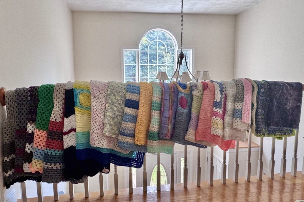 Blanketeers provide new handmade, washable blankets of all sizes and types, including quilts, receiving blankets, fleece blankets, tied comforters and crocheted or knitted afghans.