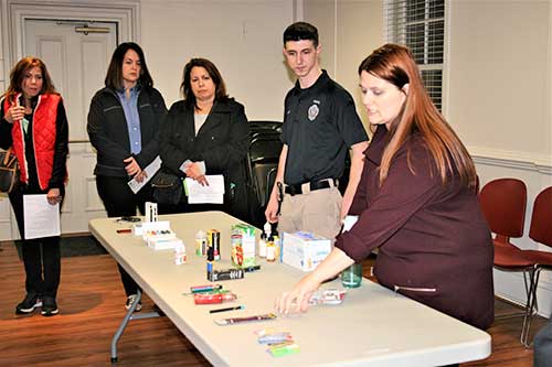 Detective Lucci introduced the crowd to the latest vaping device called the juul, which looks like a USB flash drive. Each juulpod of vaping juice contains the nicotine equivalent to one pack of cigarettes.