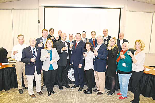While they toasted with the non-alcoholic variety, the celebratory atmosphere in Room 14 at Town Hall was genuine as Selectmen Chairman Mike Prisco invited everyone at the local and state level who had a hand in bringing the $30 million cash sale of roughly 32 acres of land to Pulte Homes of New England to fruition to the party.