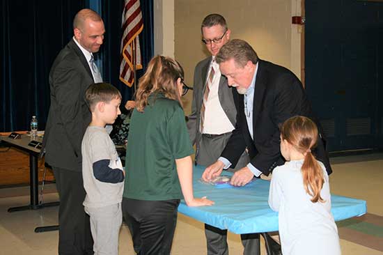 Student Council members Jackson Wesley, Nicole Hawley, Alexandria Sfikas, Madison DelVecchio and Francesca Cataldo attended the meeting to share their experiences as council members, and to present a video created by the student news team with the help of fifth grade teacher Whitney Cleary and digital learning specialist Sam Anthony.