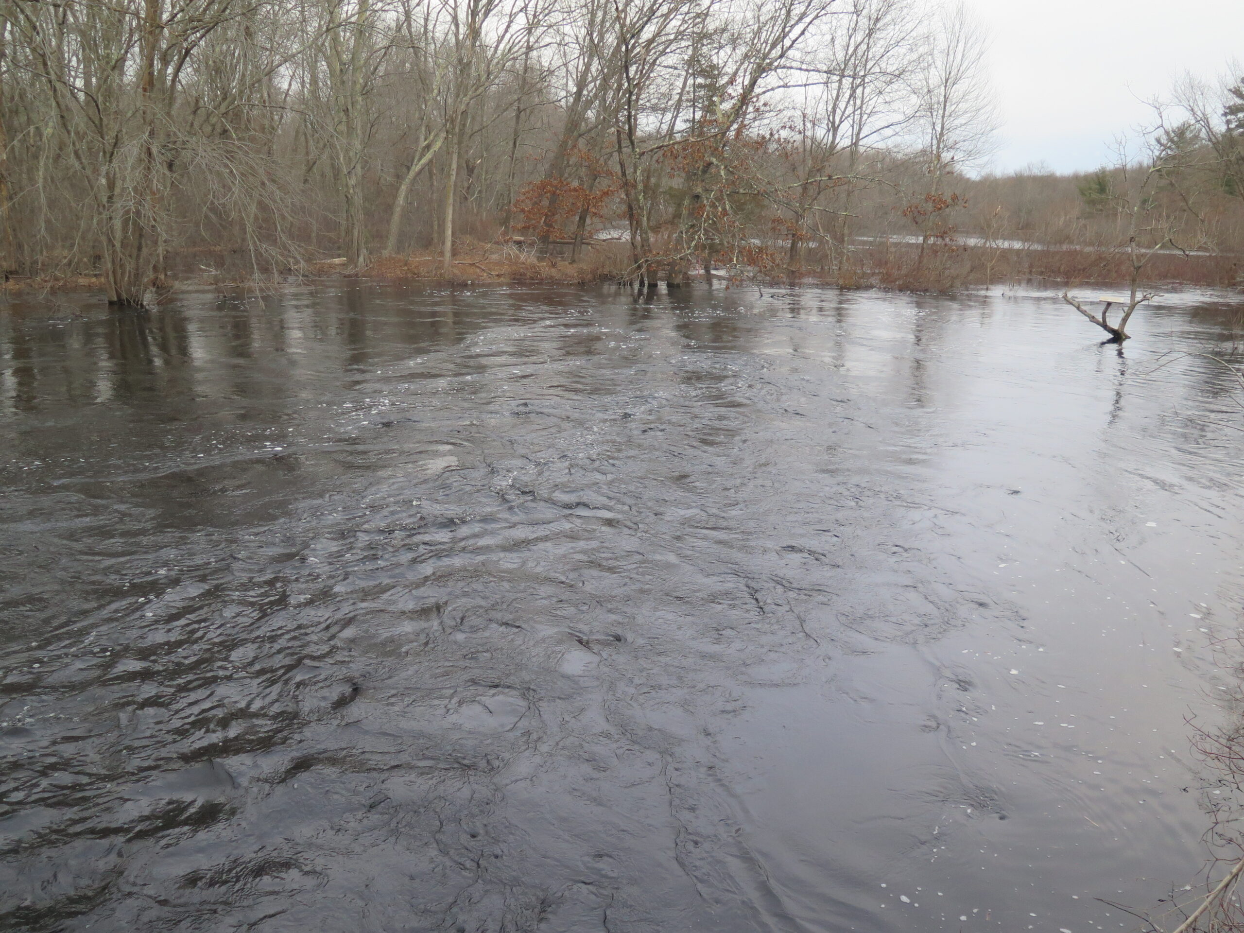 A SWIFT CURRENT was evident in this photo of the Ipswich River captured by longtime North Reading resident Don Miller following recent flooding rains.