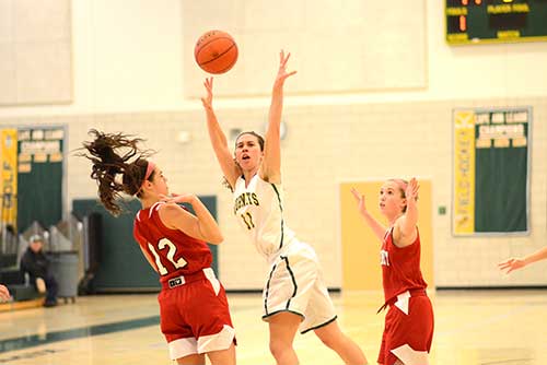 NORTH READING — The NRHS girls’ basketball team pushed their record to 6-1 with a thrilling 51-48 double overtime victory over the visiting Manchester-Essex Hornets on January 9. Junior Mia DeNofrio led the way with a career high 16 points, eight of which came in the overtime periods. Fellow junior Casey McAuliffe contributed 12 points.