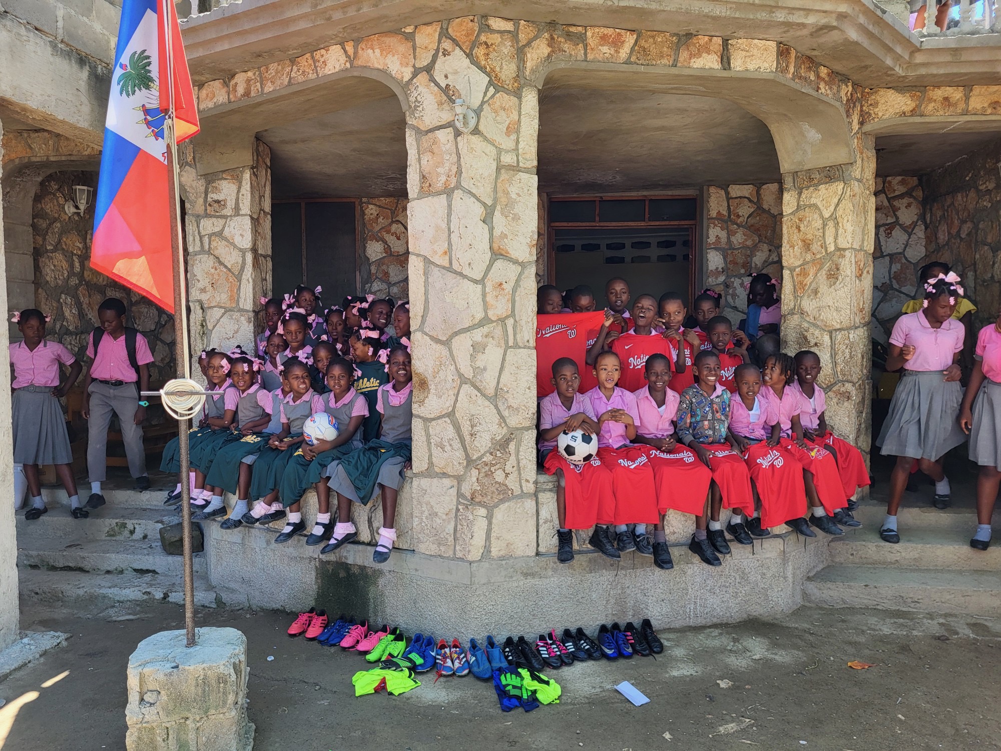 On March 7, seven months after their equipment drives, Daniel made the trip. He went to five Haitian schools in three random neighborhoods. He brought with him, along with the gear, the varsity posters of the boys who contributed to the drive — Matthew, Max, and his brother Duncan. In his experience of donating the gear, Daniel was able to see the impact that this drive had on the kids who were used to playing soccer without the luxury of proper shoes or a nice net. He said, “I had goosebumps because I could see myself in them.”