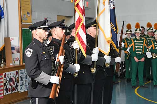 THE PRESENTATION of Colors was handled with pride by the North Reading Police Department Honor Guard at Sunday’s Veterans’ Day observance. (John Friberg Photo)