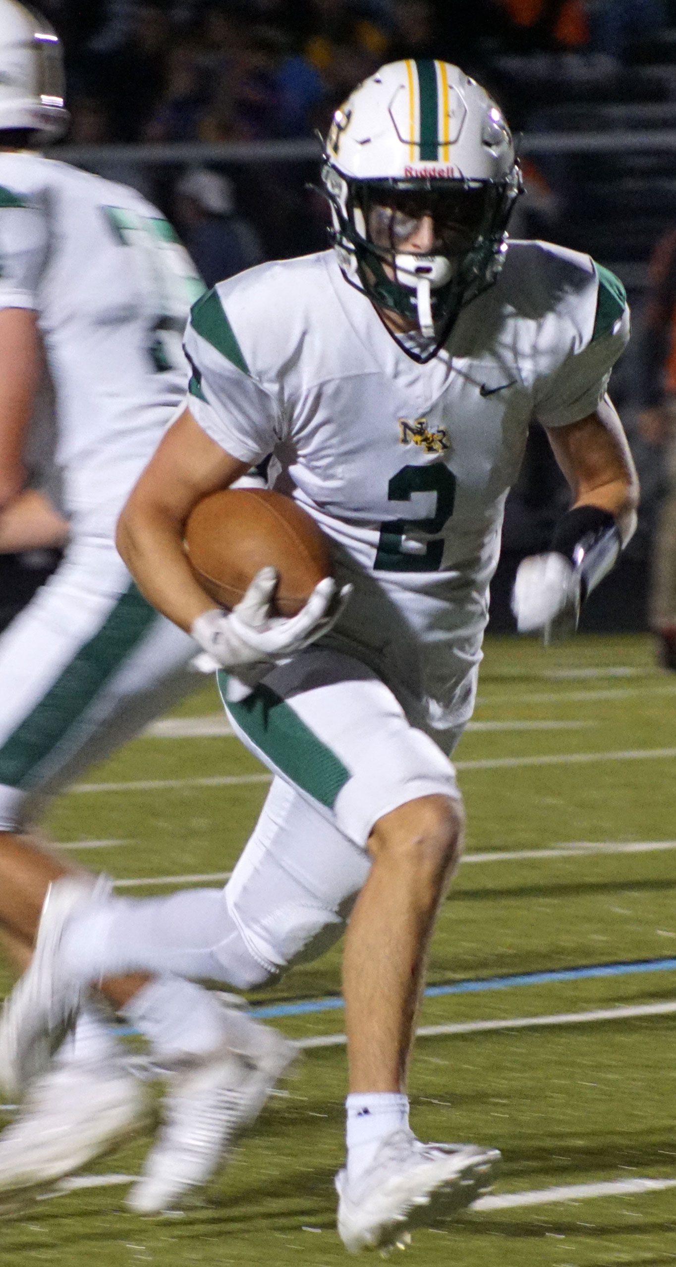 “We were very fortunate to have him return to North Reading and be part of this,” said Blum of his electrifying junior tailback who transferred from St. John’s. “He’s another one that put in the hard work in the weight room and football-IQ wise, he’s very good and very coachable.”