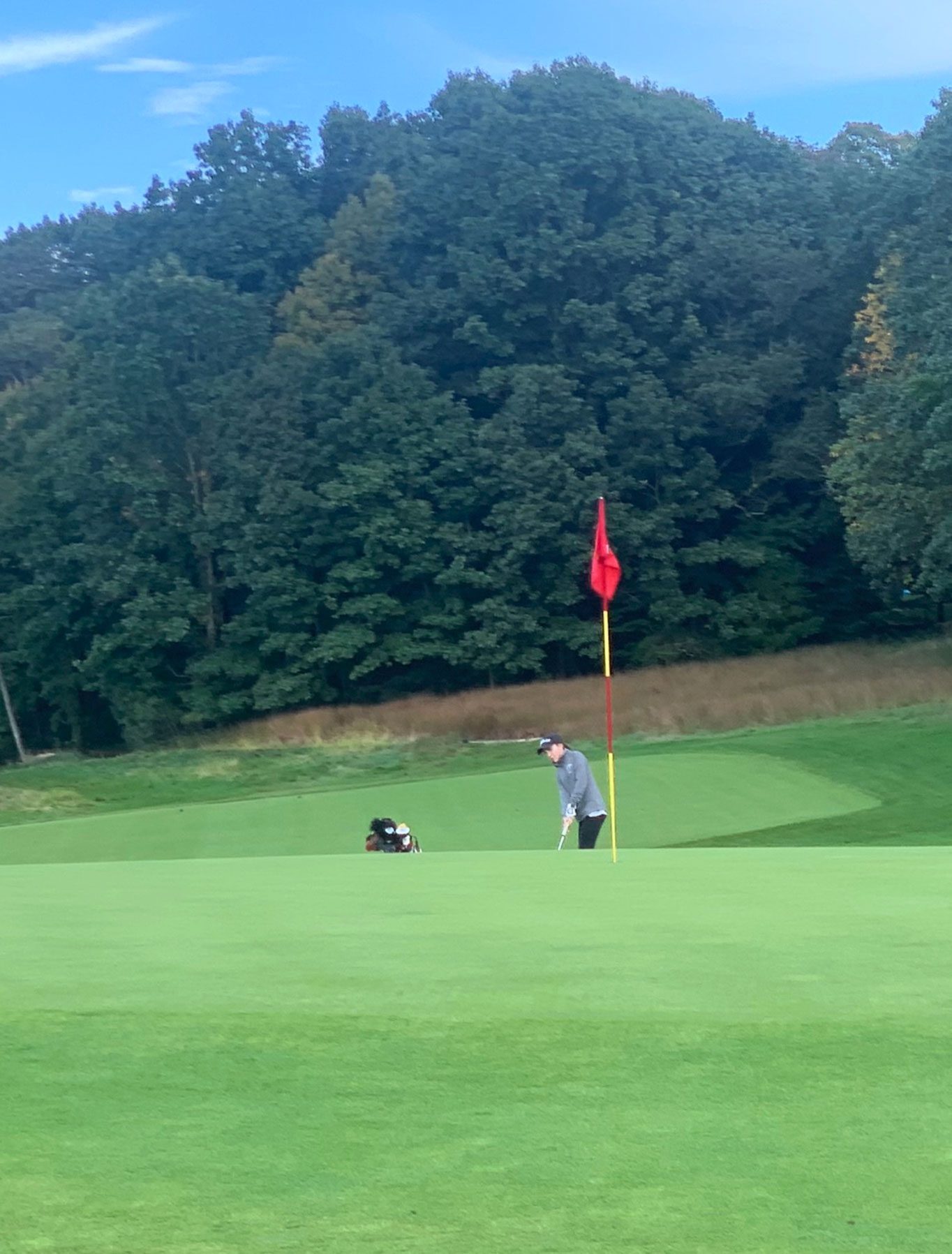 On Tuesday, October 5 the team traveled to Myopia Hunt Club in Hamilton to take on first-place (CAL small division) Hamilton-Wenham. Freshman Jason Curran continued to play well starting the day by birdying the first two holes. It was no surprise that Brozena was again the top performer in the match with 28 points, with Fischer and senior Joey Collins’ personal best performances at the extremely difficult course, the team won again by score of 135-109.