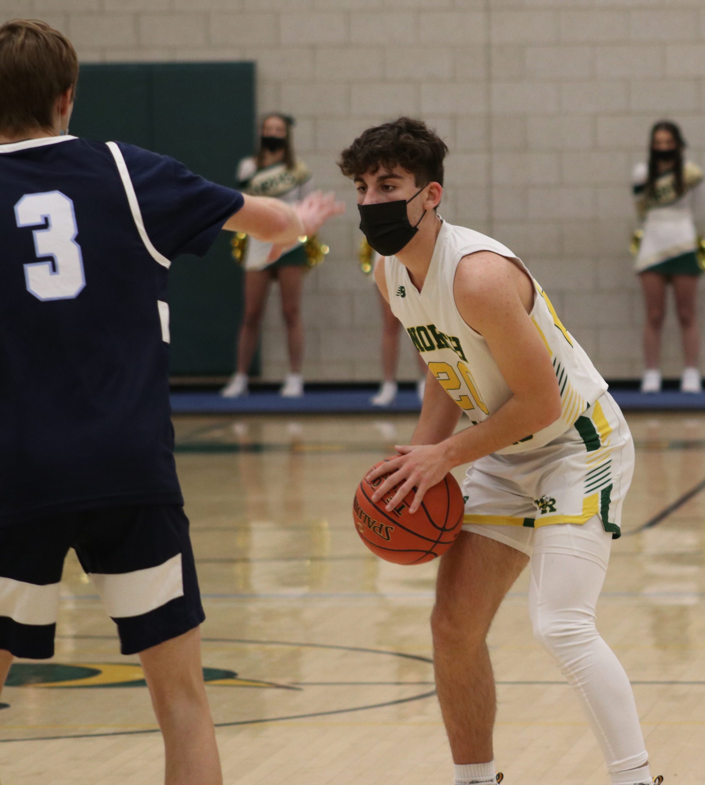 North Reading’s offensive woes largely continued in the second quarter but junior forward Andrew Boulas had 6 of his 16 total points in the frame as NR went up 21-10 at the break.