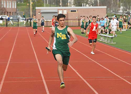 Overall event winners included double winner Billy Lord in the 110 Meter Hurdles (15.0), breaking the school record of 15.1 set by Matthew Sexton in 2009, and the Long Jump (19’ 11.5”); Lionel Beane in the 400m Hurdles (59.0) which was good enough for 4th all-time in NRHS history; Gerry Callagy in the Javelin (115’8”); Cam Chinchillo in the Triple Jump (40’ 7.5”) which was good enough for 10th all-time in NRHS history; Joey DiSanto in the Shot Put (41’ 3.25”); Nick Carpenter in the Pole Vault (10’ 6”); Matt Dovale in the 100 Meter Dash (11.8) and the 4×100 Relay team of Joey McCarthy, Grayson Budny, Jack Donohue and Billy Lord (45.4).