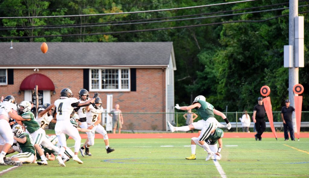 “He was such a weapon in this game,” said North Reading coach Ed Blum of Guidebeck, who is ten-for-ten in PATs in two games and also contributes in a defensive role. “Ever since he came in, he’s had this great kicking mindset and you’re seeing it in his attitude and his leg strength. We try to make special teams a difference-maker and it showed tonight.”