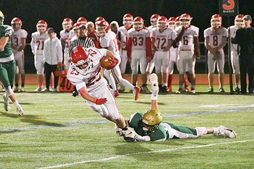 Prescient words, indeed. In the case of the win over Masconomet, it was three plays that ultimately put this one to rest. Along with Keller’s TD catch and run, Brayden Scribner came up with another clutch pickoff, ending a Chieftan last chance drive. And Keller was back in the final seconds, needing 8-yards for a first down but rushing 28-yards to extend the final possession and burn the clock.