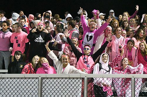 Masconomet briefly quieted the North Reading faithful, many dressed in some form of pink costume in honor of breast cancer month, with a long third quarter scoring drive, capped with a Lastes 1-yard keeper. The Chieftans tied it at 14-14 with a successful two-point conversion.