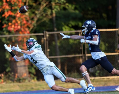 On the strength of five first half TDs, three in the opening quarter alone, the Hornets amassed what proved to be an insurmountable 38-12 lead at the intermission. Wilmington, which suffered a tough season-opening 48-6 defeat to Chelmsford the week before, didn’t stand a chance against the visitors.