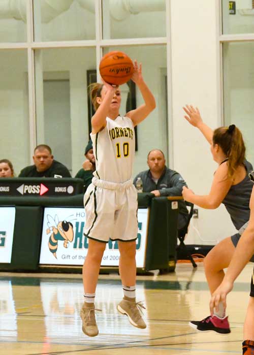 NORTH READING — Junior Casey McAuliffe scored 17 points as the Hornets improved to 5-1 with their 42-29 victory over the Haverhill Hillies on Wednesday, January 3. Sophomore Ali Grasso chipped in nine points.