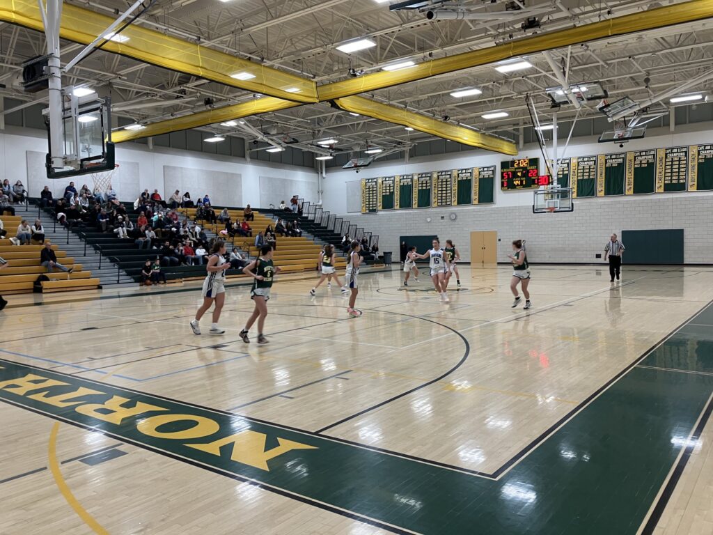 THE NRHS girls’ basketball team hosted another successful Holiday Tournament last week. The Hornets went 1-1 including a 61-24 victory over Danvers in the consolation round, improving to 3-3 on the season. North Reading defeated Lynnfield 56-37 Wednesday night after press time and travels to Newburyport on Friday at 6:30 p.m. (NRHS Athletics Photo)