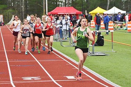 Event winners included the following: Mia DeNofrio (Discus), Katelyn Gorgenyi (100 Meter Hurdles), Ali Grasso (400 Meter Hurdles), Grace Hadley (800 Meters), Megan Lawlor (Long Jump and Triple Jump), Isabella Parrett (Pole Vault), Abigail Martin (Javelin), Ali Grasso (Triple Jump), Lindsay Ma- cLellan (One Mile and Two Mile), and the 4×100 Meter Relay team made up of Meredith Martin, Kait- lyn Shevlin, Megan Lawlor and Kaitlyn Gorgenyi.