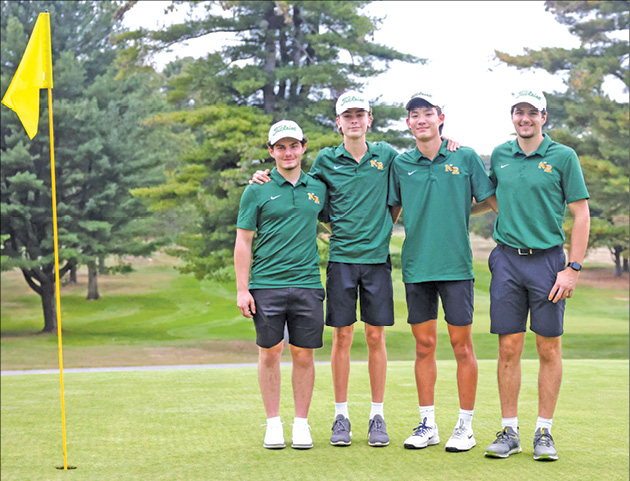 THE HORNET golf team sent off their seniors with a victory over Essex Tech on Tuesday. Pictured from left to right is Jack Harty, Brayden Carlson, Conrad Gerber and Leo Romanski. (Eric Evans Photo)