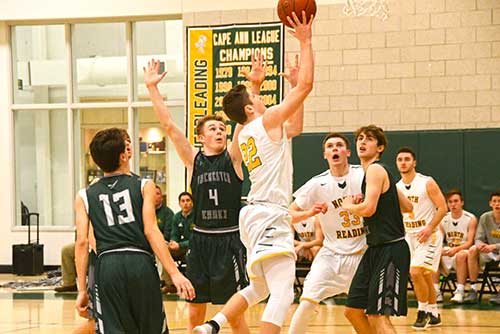 The Hornets stayed within reach for most of the first quarter and were only down 17-10 at the end of one. Fueled by superb defense, North Reading trimmed down the lead in the second quarter. They held the Sachems to just eight points. Connor hit two long 3-pointers, senior Ryan Landers had two inside hoops and NRHS only trailed 25-24 at the half.