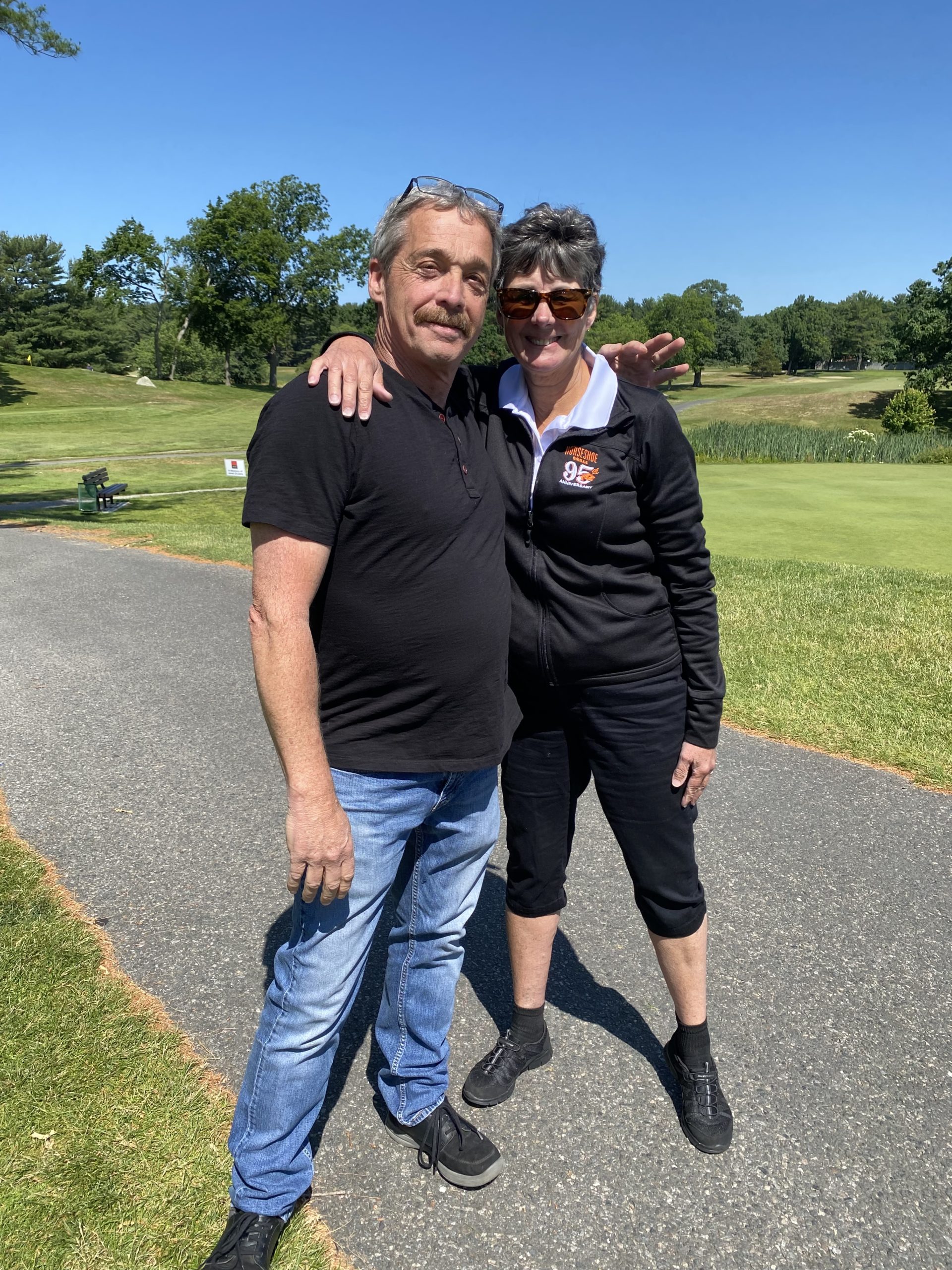 PAUL O’LEARY AND PENNI MULLARKY celebrate a successful 37th annual Horseshoe Grille Jimmy Fund Golf Tournament. The tournament raised over $45,000 for the Jimmy Fund, and the proceeds will be donated in memory of Paul’s late wife Janet. (Kathi Lee Photo)