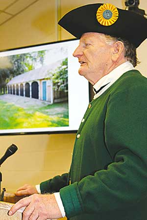 Pat Romeo, who has been associated with the town’s historical community for decades, provided a history of the organization while photos of the many buildings the Militia members have preserved on the grounds of the Putnam House flashed on the screen.