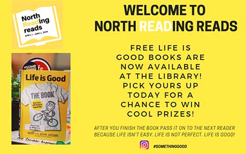 North Reading Reads 2019 is inspired by the “Life Is Good” books by Bert and John Jacobs. Those who choose to participate may pick up a tote bag with a copy of the book and enter to win raffle prizes.