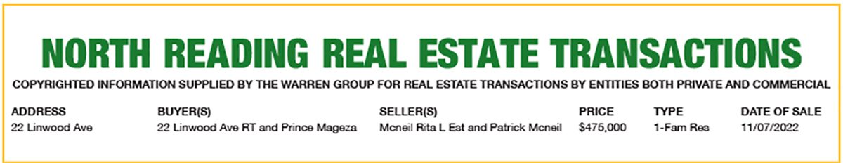 North Reading Real Estate Transaction December 1, 2022