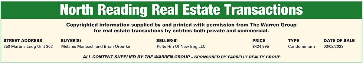 North Reading Real Estate Transactions March 30, 2023
