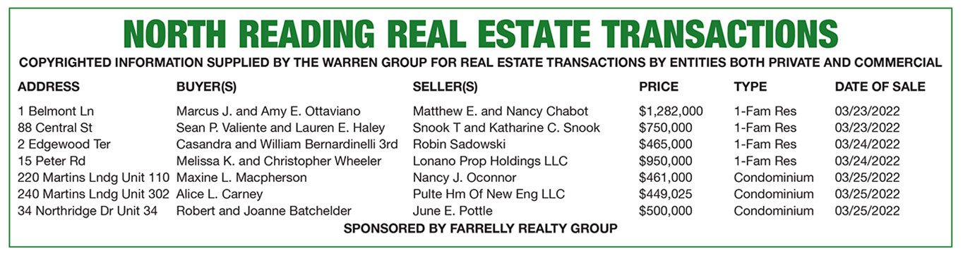 North Reading Real Estate Transactions published April 14, 2022