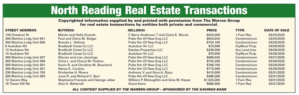 North Reading Real Estate Transactions published April 16, 2025