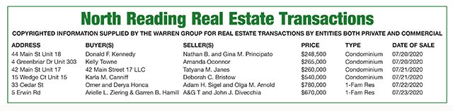 North Reading Real Estate Transactions published August 13, 2020