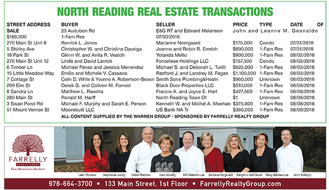 North Reading Real Estate Transactions published August 30, 2018