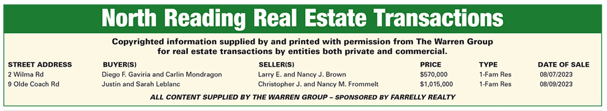 North Reading Real Estate Transactions published August 31, 2023