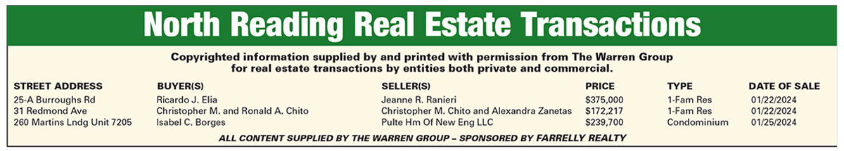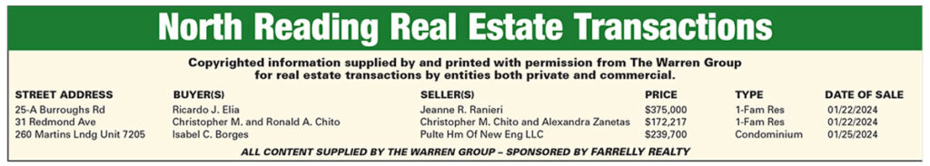 North Reading Real Estate Transactions published February 15, 2024