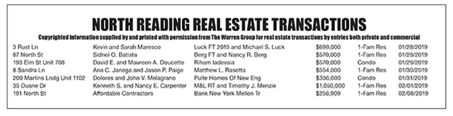 North Reading Real Estate Transactions published February 28, 2019