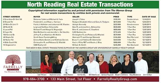 North Reading Real Estate Transactions published January 3, 2019