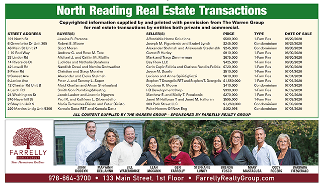 North Reading Real Estate Transactions published July 23, 2020