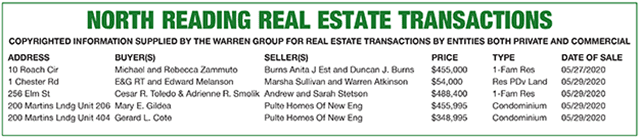North Reading Real Estate Transactions published June 18, 2020