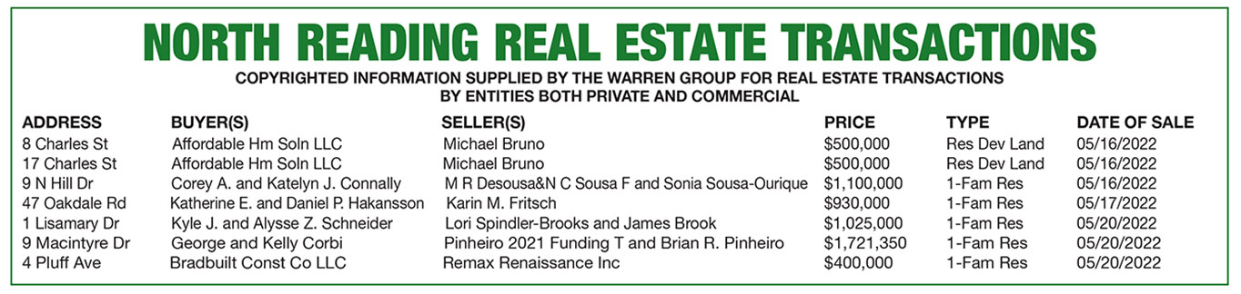 North Reading Real Estate Transactions published June 9, 2022