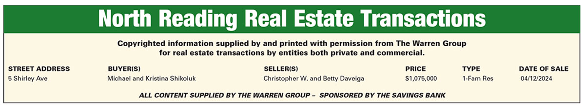 North Reading Real Estate Transactions published May 2, 2024