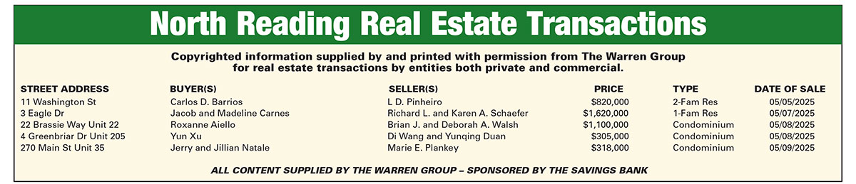 North Reading Real Estate Transactions published May 29, 2025