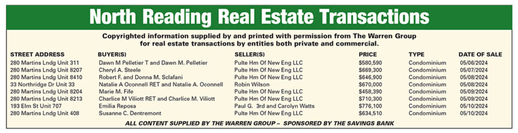 North Reading real estate transactions published May 30, 2024