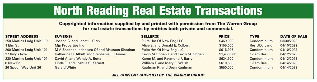 North Reading Real Estate Transactions published May 4, 2023
