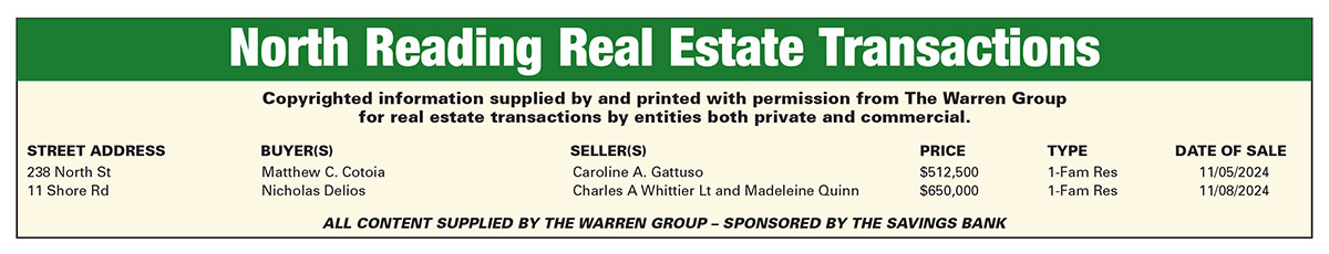 North Reading Real Estate Transactions published November 27, 2024