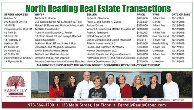 North Reading Real Estate Transactions published November 8, 2018