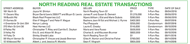 North Reading Real Estate Transactions published October 4, 2018