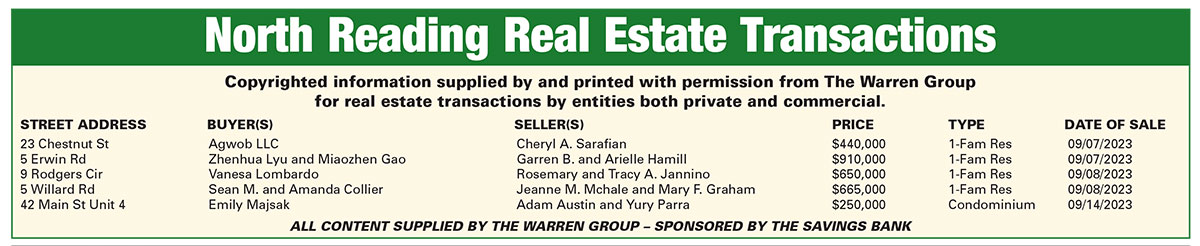 North Reading Real Estate Transactions published October 5, 2023